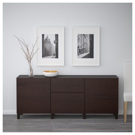 БЕСТО 992.063.42 Комбинация для хранения с ящиками, черно-коричневый, Халлставик темно-синий (180x40x74 см)