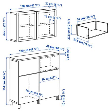 Комбинация для хранения с дверцами, белый/хедевикен дубовый шпон 120x42x193 см IKEA BESTÅ БЕСТО