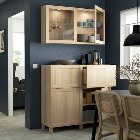 Рисунок древесных волокон на дверцах ХЕДЕВИКЕН позволяет создать выразительный орнамент на мебели БЕСТО.Дверцы защищают содержимое и выполняют декоративную функцию. Выберите дверцы, подходящие к интерьеру Вашего дома.