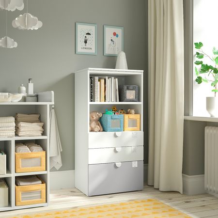 Стеллаж, белый береза/с 3 ящиками 60x42x123 см IKEA SMÅSTAD СМОСТАД / OPPHUS ОПХУС
