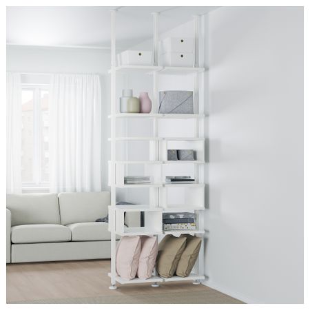 Высота регулируется 222–350 см, что позволяет максимально использовать всю высоту помещения.К каждой стойке прилагаются два крепления, чтобы вы могли установить элементы для хранения на выдвижной части стойки, используя всю ее высоту.