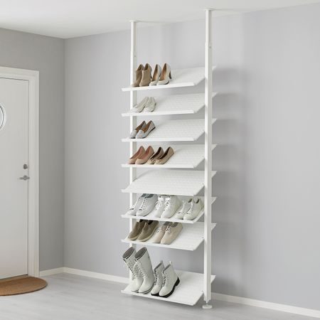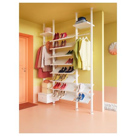 Высота регулируется 222–350 см, что позволяет максимально использовать всю высоту помещения.Одна полка для обуви шириной 80 см вмещает 3–4 пары.