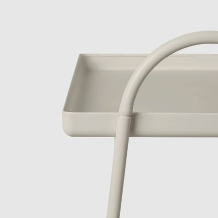 Во время перестановки стола все вещи останутся на своих местах благодаря высоким бортикам на двух полках. Во время уборки можно легко отодвинуть стол, взявшись за специальную ручку на торце.