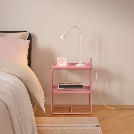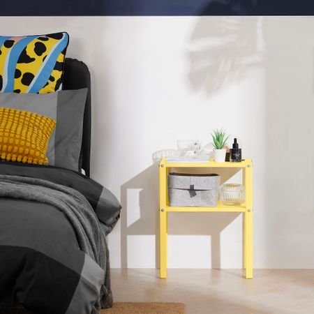Прикроватная тумба оснащена верхней полкой, удобным выдвижным ящиком и открытым отделением для хранения. С ее помощью все нужные вам вещи всегда будут рядом с кроватью. Благодаря доводчикам ящики закрываются плавно и бесшумно.