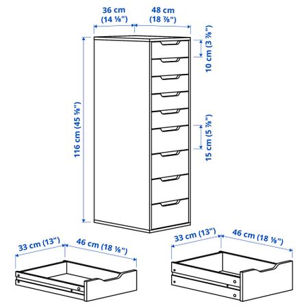 Секция с 9 ящиками, белая морилка, под дуб, 36x116 см IKEA ALEX АЛЕКС