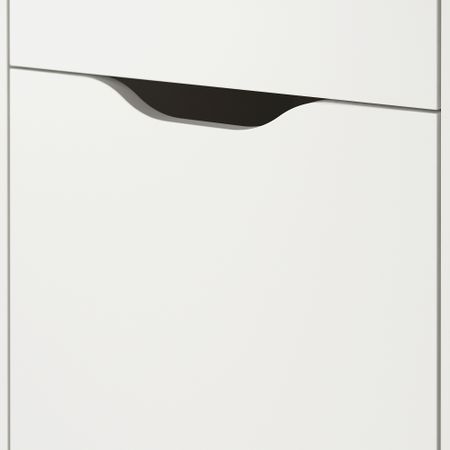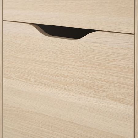 Тумбу с ящиками на колесах легко поставить именно туда, где она вам сейчас нужна. Прорезные ручки придают тумбе выразительность и делают открывание ящиков удобным. Благодаря отделке задней панели модуль необязательно ставить к стене.