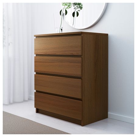 МАЛЬМ 503.152.86 Комод с 4 ящиками, коричневая морилка ясеневый шпон (80x100 см)