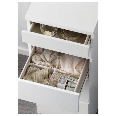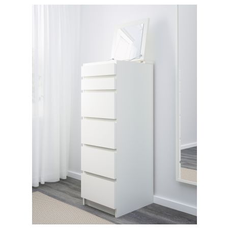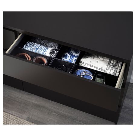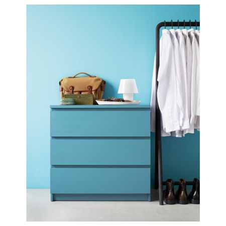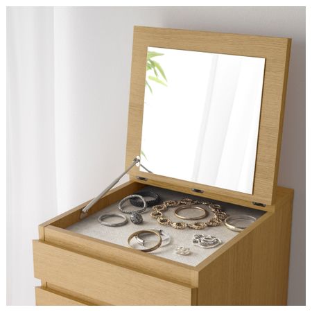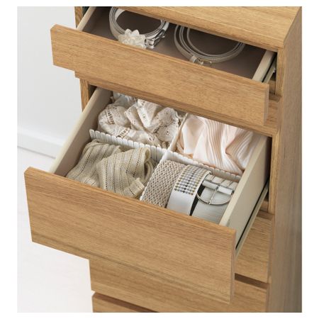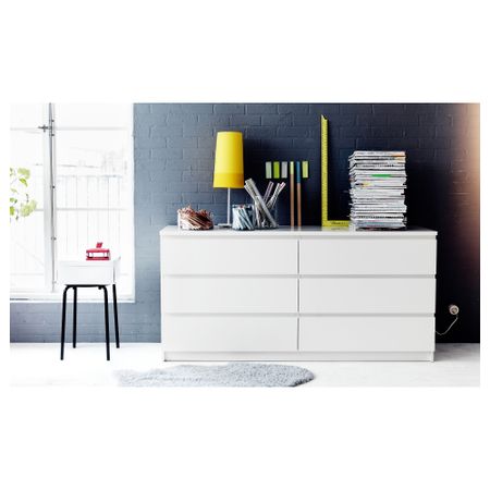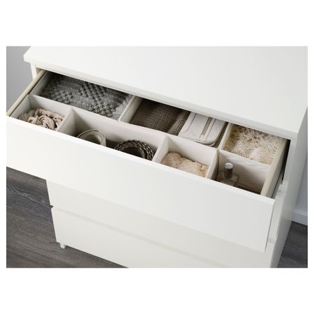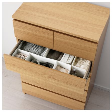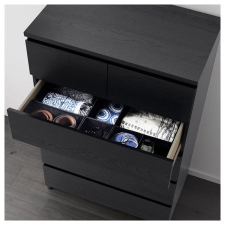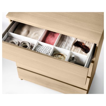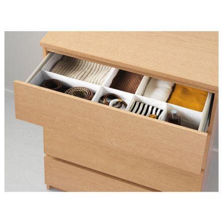 Благодаря отделке из шпона дерева этот комод с годами будет выглядеть только лучше. Чтобы ящики не выпадали при открывании, они оснащены специальным стопором. Для организации внутреннего пространства можно дополнить набором из 6 коробок СКУББ. Размер: 80x78 см