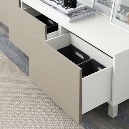 Тумба для ТВ с ящиками, 120x40x74 см, белый, Selsviken глянцевый, бежевый IKEA BESTÅ БЕСТО