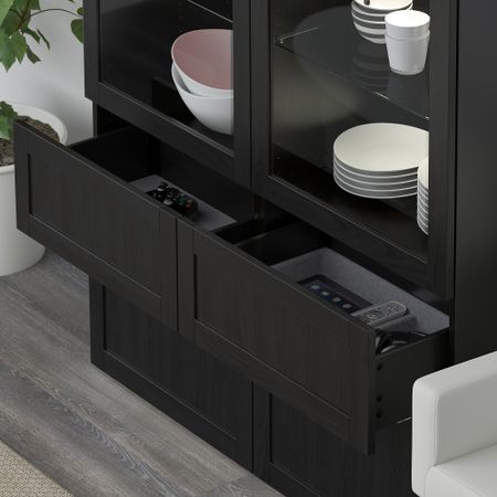 Благодаря доводчикам ящики закрываются плавно и бесшумно. Благодаря нескольким отверстиям на задней панели тумбы под ТВ провода от телевизора и других устройств всегда будут под рукой, но не на виду.
