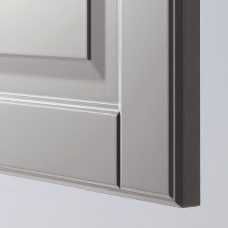 Серая дверца БУДБИН с широкой рамой подчеркнет традиционный стиль вашей кухни, добавив в интерьер сдержанный изящный колорит.