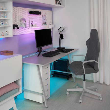 Геймерский стол, стул и тумба, светло-серый, белый IKEA UTESPELARE УТЕСПЕЛАРЕ / MATCHSPEL МАТЧСПЕЛ