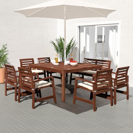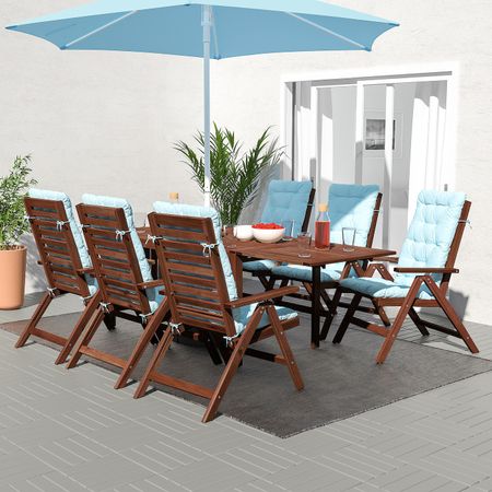 Садовый складной стол + 4 стула, бежевый/ФРЁСЁН/ДУВХОЛЬМЕН синий IKEA САЛЬТХОЛЬМЕН