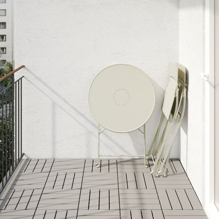 Чтобы продлить срок службы подушки, ее можно регулярно переворачивать.Эта мебель занимает мало места при хранении, так стол и стулья складываются.Мебель обработана полупрозрачной морилкой.