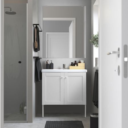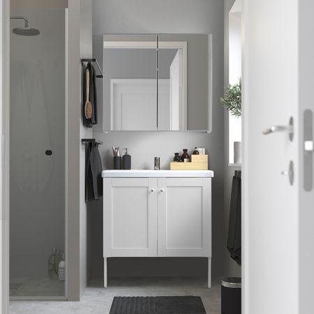 Комплект мебели для ванной, 7 предм., белый/ПИЛКОН смеситель 64x43x88 см IKEA FISKÅN ФИСКОН / TVÄLLEN ТВЭЛЛЕН