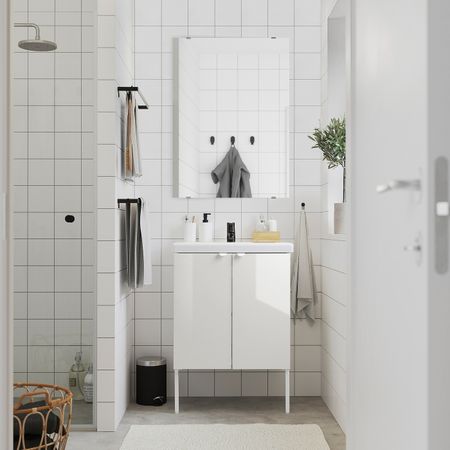 Достаточно места для хранения и идеальное решение для небольших ванных комнат, так как ширина шкафа всего 60 см.Напольный шкаф для раковины прекрасно вмещает все принадлежности для гигиены, которые обычно создают ощущение беспорядка.