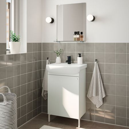 Комплект мебели для ванной, 6 предм., белый/ПИЛКОН смеситель 54x40x98 см IKEA NYSJÖN НЮШЁН / BJÖRKÅN БЬЙОРКОН