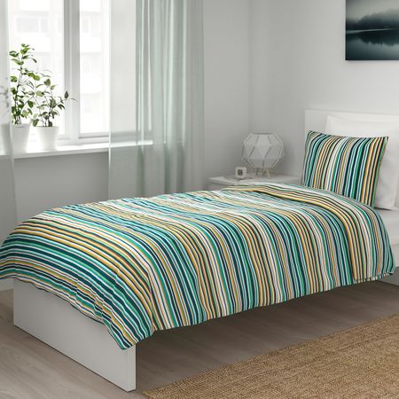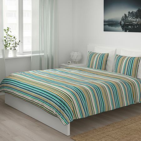 Пододеяльник и 2 наволочки, белый, синий 200x200/50x70 см IKEA KÄLLFRÄNE КЭЛЛЬФРЭНЕ