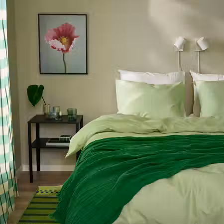 Часть коллекции Нютиллверкад, где товарам, ставшим классикой ИКЕА, придают новый облик. Пододеяльник с потайной застежкой — одеяло не выбивается. Прочный пододеяльник легко содержать в чистоте: его можно стирать при температуре 60 °C.