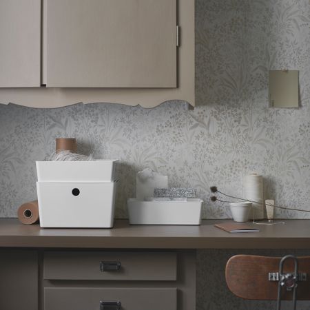 СМЕКА 903.330.71 Коробка с крышкой, белый, клетчатый орнамент (33x38x30 см)