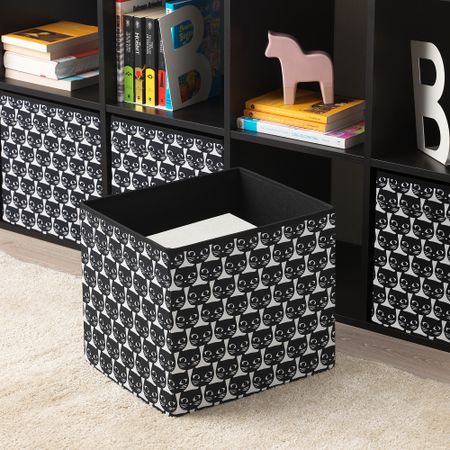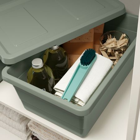 Подходящий размер для хранения объемных вещей, например одежды или гаджетов. Коробка прекрасно подходит для полок стеллажа КАЛЛАКС. Легко выдвигать и поднимать благодаря ручкам.