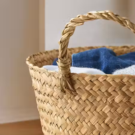 Эта прочная и красивая корзина со стальным каркасом сделана из морских водорослей.