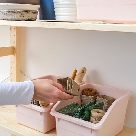 Удобно хранить аксессуары для рукоделия и игр и т. п.Удобно поднимать и переносить благодаря прорезным ручкам.Если вы хотите одновременно хранить в контейнере предметы и большого, и маленького размера, дополните контейнер вставкой КУГГИС.