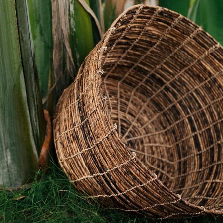Эта корзина изготовлена из скрученного волокна банана — той части растения, которое удаляют во время сбора урожая, чтобы освободить место для молодых побегов.Цвет волокна зависит от сорта банана, а также климатических условий, в которых он рос.