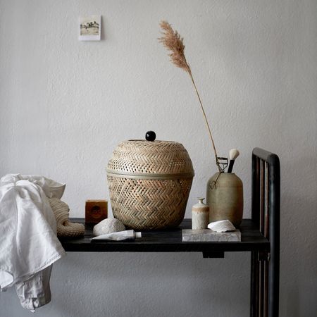 Эта бамбуковая корзина изготовлена вручную искусными мастерами, что придает каждому изделию уникальность.Размер корзины подходит для хранения небольших аксессуаров одежды или зарядных устройств.