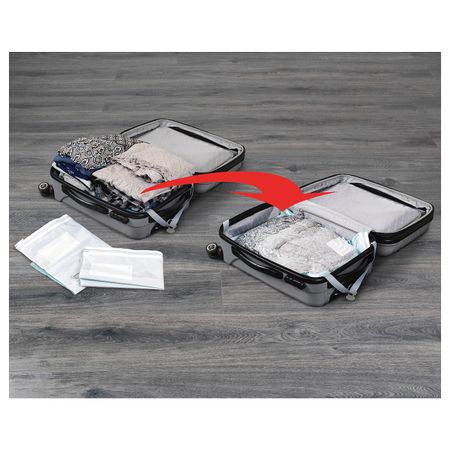 Вы просто кладете вещи в чехол и удаляете из него воздух с помощью обычного пылесоса.ВНИМАНИЕ! Опасность удушья. Не давать маленьким детям.Размеры: 70x100 см и 120x100 см.
