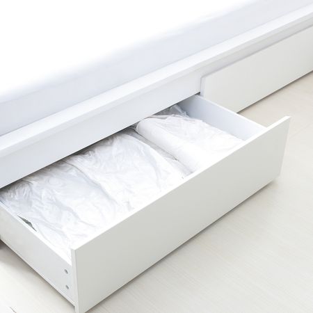 Можно поставить под кровать – отличное решение для хранения постельных принадлежностей.Защищает одежду от пыли.Сетчатые вставки в углах обеспечивают циркуляцию воздуха – вещи дольше остаются свежими.