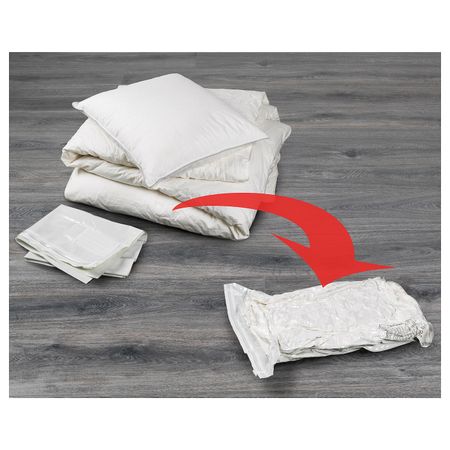 Вы просто кладете вещи в чехол и удаляете из него воздух с помощью обычного пылесоса.ВНИМАНИЕ! Опасность удушья. Не давать маленьким детям. Длина: 135 смШирина: 70 смВысота: 38 смКоличество в упаковке: 2 шт.