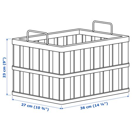 Корзины обеспечивают аккуратное хранение самых разных вещей – вам не придется тратить время на утомительные поиски. Эти корзина подходит для мебели для хранения серии БЕСТО, а также для другой мебели с полками глубиной не меньше 27 см. Размер: 36x27x23 см