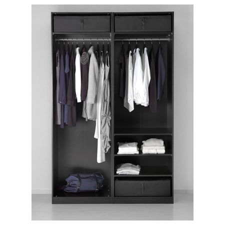 Все три ящика подходят к каркасу гардероба шириной 100 см. Удобно выдвигать благодаря ручке. Когда коробка вам не нужна, ее можно сложить. Для этого нужно открыть молнию на дне коробки. Подходит для каркасов гардеробов ПАКС глубиной 35 см.