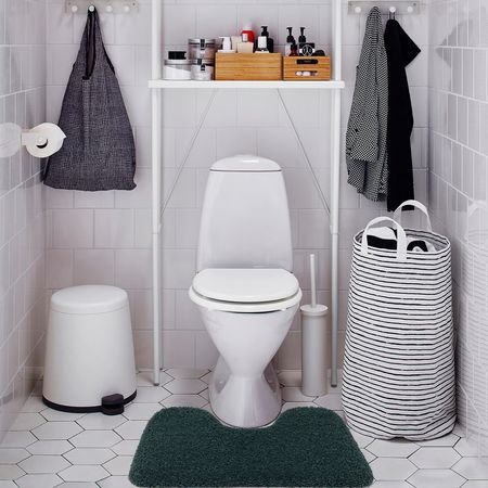 Микрофибра — очень мягкий материал, прекрасно впитывает влагу и быстро высыхает. Есть разных цветов, которые будут гармонично смотреться с другими аксессуарами для ванной.