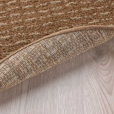 Этот простой в уходе и устойчивый к воздействию влаги ковер можно использовать не только в помещении, но и на улице. Можно положить под обеденный стол, так как по гладкой поверхности легко двигать стулья.