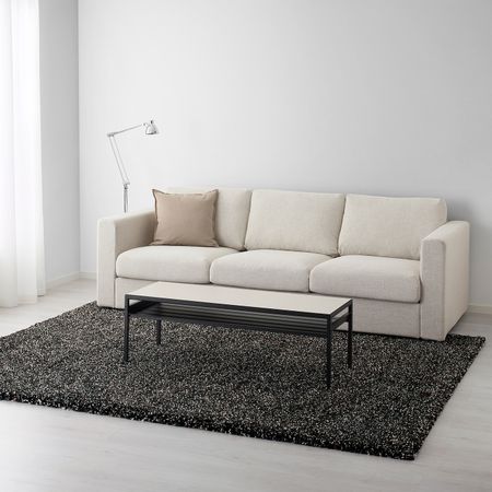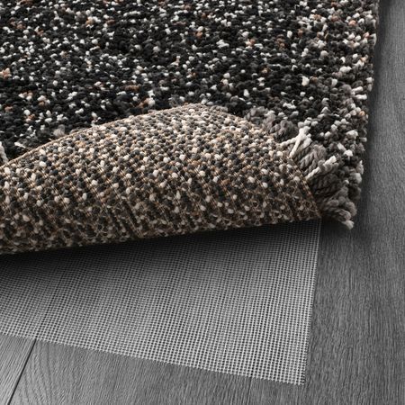 Плотный толстый ворс придает поверхности ковра мягкость и поглощает звуки. Прочный, устойчивый к загрязнениям и простой в уходе ковер изготовлен из синтетического волокна. Благодаря длинному ворсу несколько ковров можно легко соединить в один.
