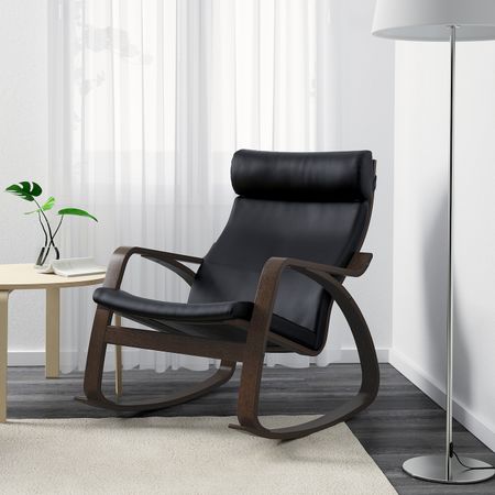 Кресло-качалка, дубовый шпон, беленый/Глосе светло-бежевый IKEA POÄNG ПОЭНГ