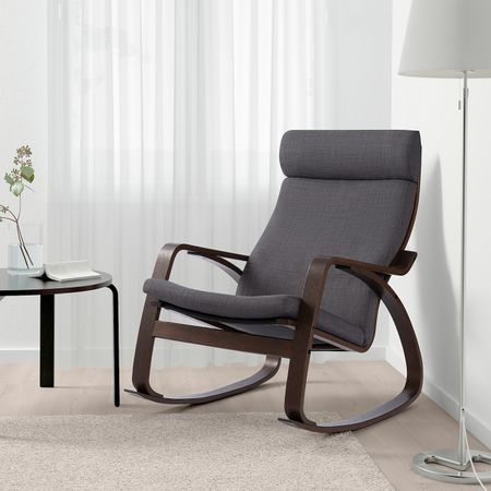 Кресло-качалка, дубовый шпон, беленый/Шифтебу темно-серый IKEA POÄNG ПОЭНГ