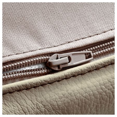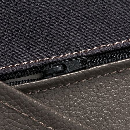 Контактные поверхности обтянуты прокрашенной кожей толщиной 1,2 мм, мягкой и эластичной. Внешние поверхности обиты тканью с прочным покрытием, которая по виду и на ощупь похожа на кожу.