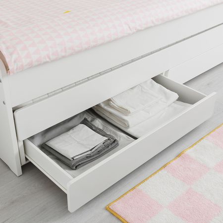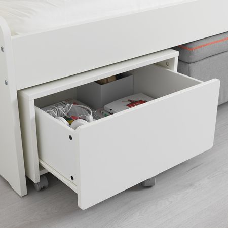 Кровать СЛЭКТ может стать еще более практичной: дополните ее другими товарами серии – секциями с отделением для хранения, ящиками на колесиках, пуфом или выдвижной кроватью.Реечное дно СУЛТАН ЛАДЕ включено в стоимость этой комбинации.