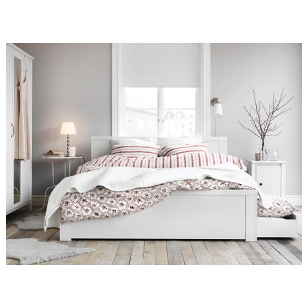 Для этой кровати необходима центральная перекладина СКОРВА. Реечное днище включено в стоимость, но упаковано отдельно. Матрас и постельное белье продаются отдельно. Кроватные ящики ВАРДО обеспечат дополнительное пространство для хранения.