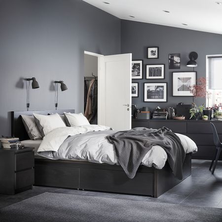 В 4 вместительных ящиках под кроватью достаточно места для хранения одеял, подушек и постельного белья.Благодаря колесикам ящики легко выдвигать и задвигать.Ящики МАЛЬМ подходят для каркаса кровати этой серии.