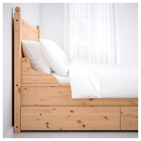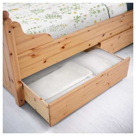 2 больших ящика на колесиках создают дополнительное место для хранения под кроватью. Благодаря отделке из шпона кровать со временем будет выглядеть только лучше. Регулируемые боковины кровати позволяют использовать матрасы разной толщины.