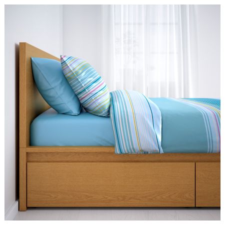 2 больших ящика на колесиках создают дополнительное место для хранения под кроватью. Благодаря отделке из шпона кровать со временем будет выглядеть только лучше. Регулируемые боковины кровати позволяют использовать матрасы разной толщины.