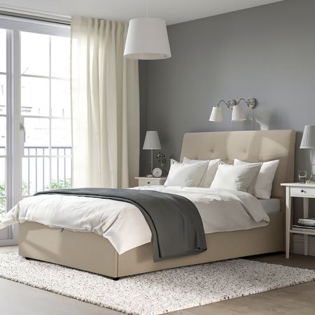 Наклонное изголовье и мягкая обивка делают кровать ИДАНЭС с подъемным механизмом особенно комфортной.