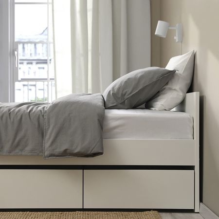 Наклонное изголовье и мягкая обивка делают кровать ИДАНЭС с подъемным механизмом особенно комфортной.