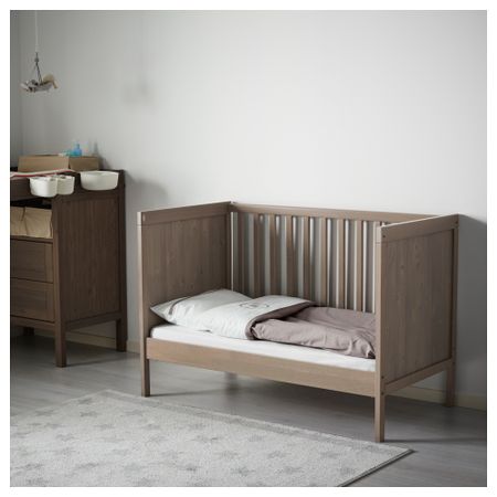 Дно кроватки можно устанавливать на двух разных уровнях. Одну боковину кроватки можно снять, когда ребенок сможет самостоятельно забираться в кроватку и вылезать из нее. Размер: 60x120 см