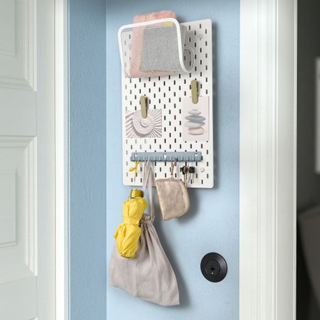Настенная панель с аксессуарами СКОДИС помогает навести порядок и быстро находить нужные вещи. Идеально подходит для всех комнат в доме.