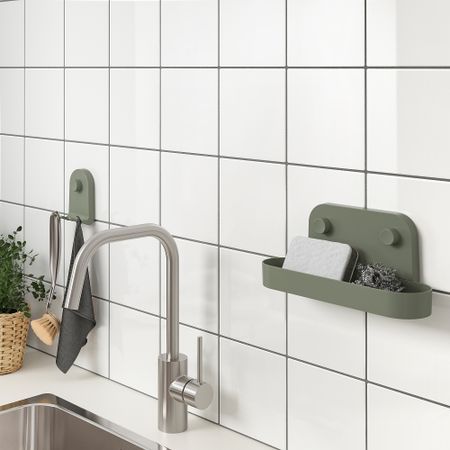 Позволяет освободить место на столешнице, при этом кухонные принадлежности всегда будут под рукой. Также можно использовать в помещениях с высокой влажностью. Легко установить на регулируемый рейлинг, мини-кухню и рейлинг СУННЕРСТА.